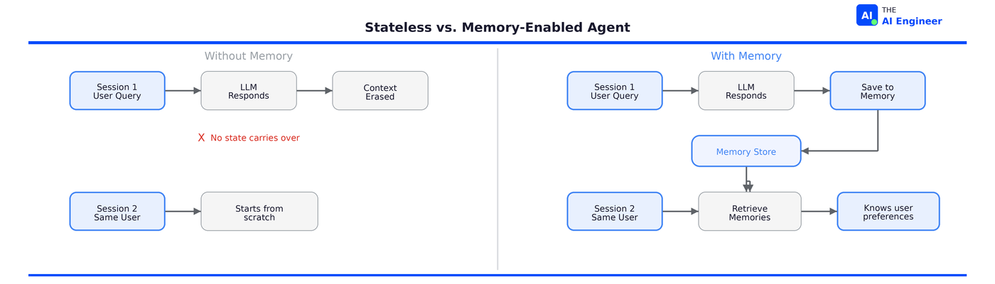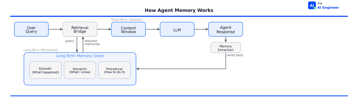 🏗️ Engineering Lesson: Memory is infrastructure, not a feature. Just as every application needs a database, every production agent needs a memory layer. And just like databases, the hard problem isn’t storing information. It’s deciding what to store, when to retrieve it, and when to let it go.