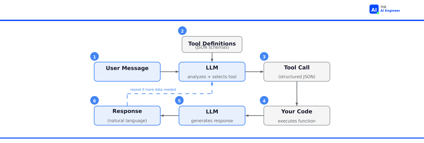 🔗 Prerequisite: We covered the think-act-observe loop that powers AI agents in What is an AI Agent?. Function calling is specifically the “act” mechanism.
